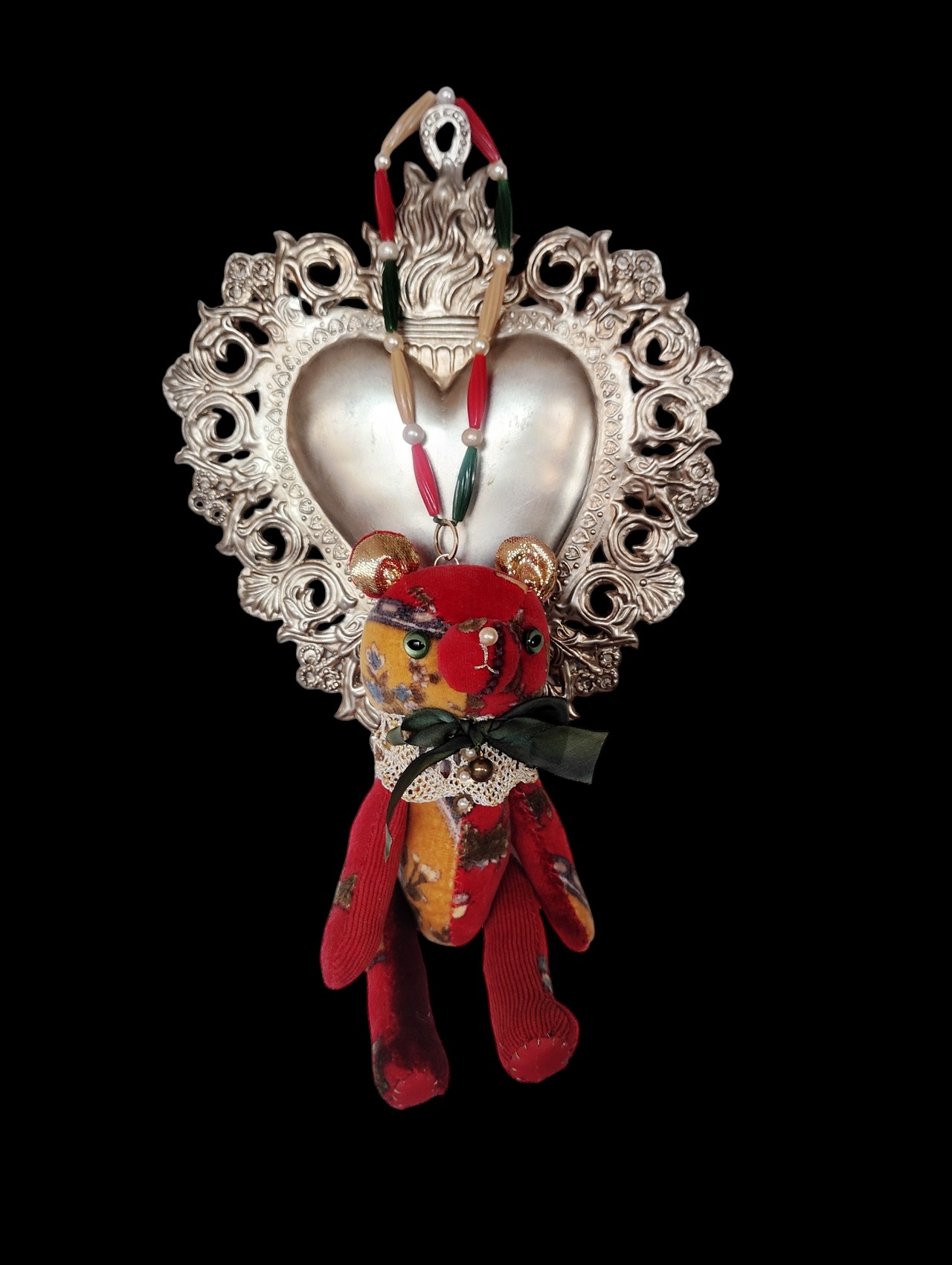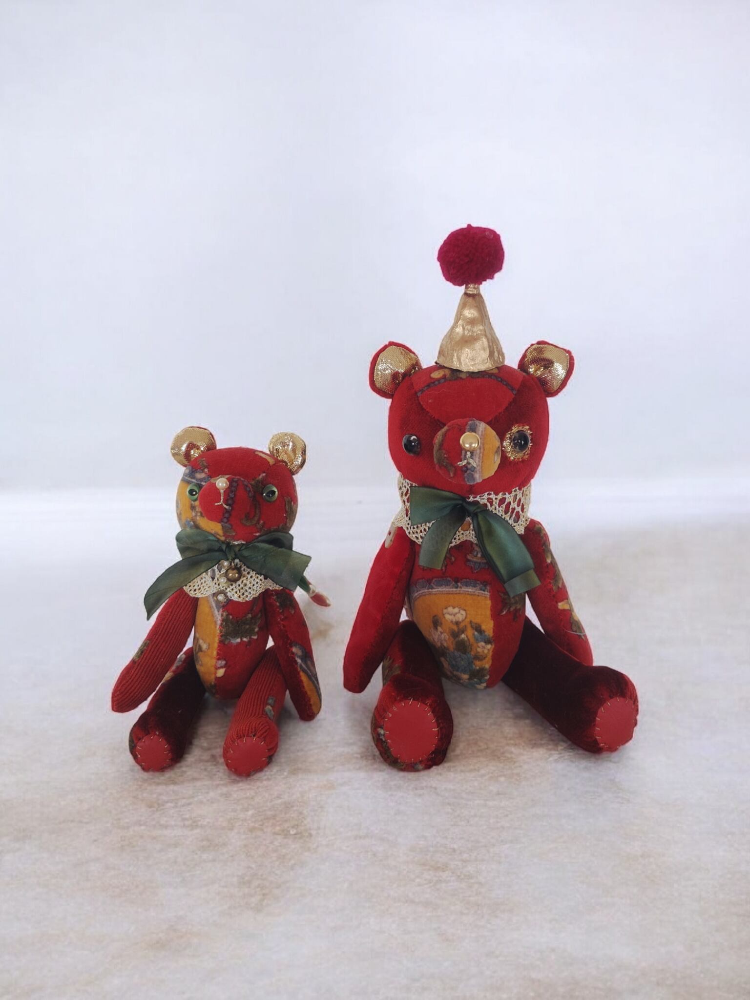 同じくアンティークの柄のベルベットを合わせた