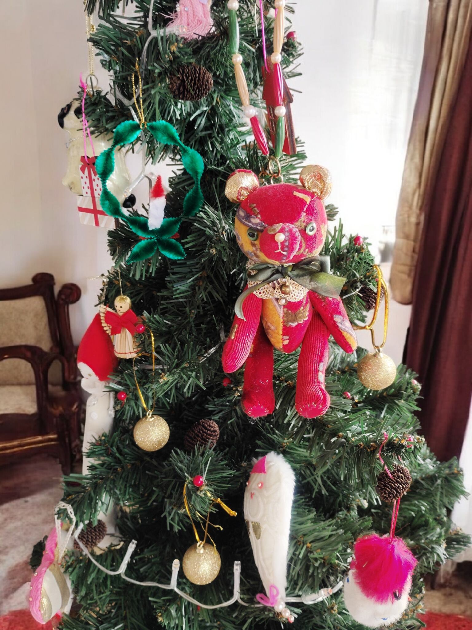 クリスマスカラーのビーズを繋げ